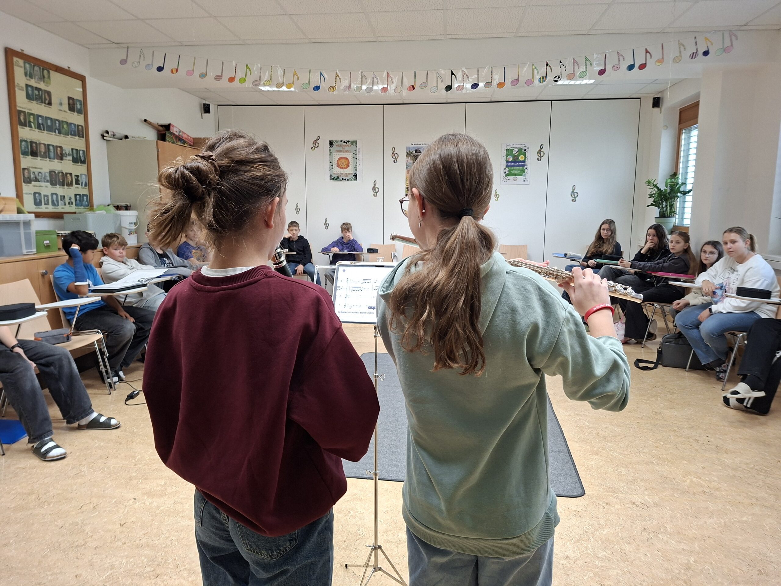 Ein besonderes Highlight boten zwei Schülerinnen der 3a Klasse, Lea und Juliana, – mit Querflöte und Klarinette boten sie einen Liveeindruck vom Klang der Moldauquellen für ihre Mitschüler:innen – ein Gänsehaut-Erlebnis!